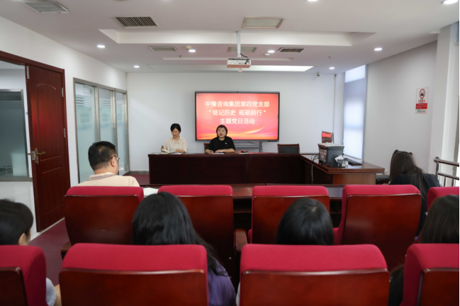 为纪念中国人民抗日战争暨世界反法西斯战争胜利80周年,弘扬伟大抗战精神,进一步激发党员责任感与使命感,8月28日,中豫咨询集团第四党支部开展“铭记历史 砥砺前行”主题党日活动,通过集体学习、观看专题片和交流研讨的形式,重温中国共产党领导抗日军民同仇敌忾、勇御外侮的光辉历史,缅怀先烈事迹,传承红色基因,引导党员从伟大抗战精神中汲取奋进力量。活动由党支部书记、河南豫信招标有限责任公司董事长韦玉军主持,支部党员、入党发展对象、入党积极分子参加。